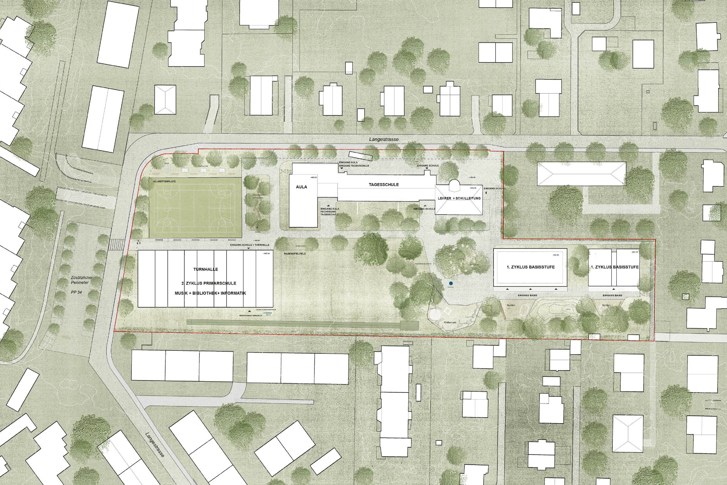 Primarschule Lerchenfeld, Thun Bauherrschaft: Leistungsphasen: Wettbewerb 2023, 1. Rang Architekten: Blättler Dafflon Architekten AG, Zürich